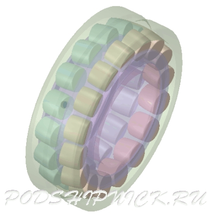 Собственно сферические роликоподшипники – двухрядные, имеют внутреннее кольцо с двумя желобами для каждого ряда и наружное кольцо со сферической внутренней поверхностью. Однорядные сферические роликоподшипники обычно называют тороидальными роликоподшипниками, дорожки качения обоих колец в них являются сферическими. Тороидальные подшипники способны выдерживать не только угловой перекос, но и осевой сдвиг.